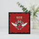 Announce your wedding with this unconventional Save the Date card in rock and roll style with crossed electric rock guitars, wings and vintage ornaments on red and black.