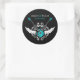 Personalised stickers for a rock 'n' roll music theme wedding or engagement party featuring a vintage illustration of winged electric guitars and baroque embellishments on teal and black. Personalise these stickers with the bride's and groom's names, add the wedding date or customise the design further if you wish to adjust the layout or to choose a different sticker shape. Matching wedding invitations, RSVP cards and Save the Date announcements also available!