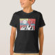 The t-shirt feels and looks great quality, a good thick cotton. It will be a little big for my son, but that means he will be able to wear it and not out grow it too soon. The print was as described on the order when personalised. True size, shape and colour T-shirt- thanks.