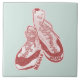 An illustration in red and pink of a retro vintage pier of rock climbing shoes. Boot style shoes. The design is to promote resoling and reranding of climbing shoes rather than replacing them. For climbers who love to get the most out of their climbing gear rather than constantly buying new things for trad sport or gym climbing.