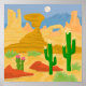 Illustrated landscape of the moon over a rock desert in the southwestern United States.