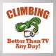 LIMBING - BETTER THAN TV ANY DAY! Rather be outdoors climbing than indoors watching TV? Then this one's for you. Rich colours and unique design - green coiled climbing rope and burnt orange carabiner. Great gift for climbers - kids or adults.