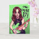 Celebrate the young punk rocker in your life with this cute birthday card. Features a cartoon illustration of a teen girl with a green electric guitar. Text on front says 'OMG! You're 17!' Which you can change to any number you want. You can edit the neon green background to a colour of your choice. You can also customise the message inside. A great card for your musically talented daughter. ⭐ Artwork by JessicaAmber. For more rock 'n' roll birthday cards, visit my store zazzle.com/jessicaamberartist ⭐ For custom orders, message me on Zazzle