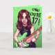 Rock Music Teen Girl Green Guitar 17th Birthday Card