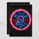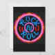 This invitation has a large colourful rock and roll neon sign on the front and a small one in the back that makes up part of the invitation wording. Use the customise button to change or delete any text on the back.