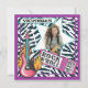Rock on with this awesome, super fun rock n' roll, rock star birthday party invitation. Room for your party information on the back, the front features a flaming electric guitar, concert ticket, star with your child's photo all on a zebra print background. Just replace the photo shown with your child's photo by clicking on "change image". Hand drawn illustration by McBooboo.