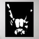 Starkly lit hand in rock salute in darkness. Black and white graphic, on t-shirts, hoodies, cards, gifts.