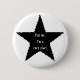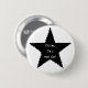 A cute plain and simple raggedy edged black star on a pin on button. The wording in the centre says "Kiss me, I'm a rock star!" for fun and flirts.