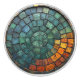 Pretty rock, stone in shades of red, green, blue yellow and orange arranged in a spiral pattern.