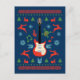 An ugly holiday sweater t-shirt design with an electric guitar and various rock music symbols, on t-shirts, sweats, cards, gifts.