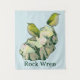 This illustration shows two Rock wrens / tukes perched on an alpine rock. The rock wren is a small bird found in the alpine regions of New Zealand's south island. The birds are on a stylised rock which is covered in moss and lichen.