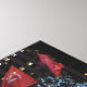 Features an original colour photograph of red flags flying in the wind at the Rockefeller Centre ice skating rink. Photographed in New York City.