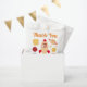 Above there is the message Thank You, below, the name and occasion, both in orange coloured retro script.