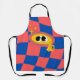 This apron features a bold pattern with large red and blue chequered squares, designed to effectively conceal kitchen stains. The deep reds and blues not only hide spills but also add a vibrant touch to your kitchen attire. The cartoon-like egg design with stars and a rocket adds a fun and playful element, making it both functional and stylish.