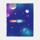 Rocket Fleece Blanket is soaring through space and earth is now in the distance.