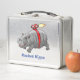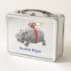 This is a standard metal lunchbox that appears to work just fine. We designed this box ourselves with an uploaded photo and custom text on the front and back. It looks absolutely beautiful except the front of the lunchbox is not centered like it shows in the photo. The print borders don't align with the inset flat part of the box where the preview photo online showed it perfectly centered in there. The back looks nice and centered though.