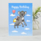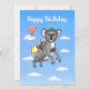 The koala has got its own rocket so it can get through Australia faster. Funny and cute koala illustration on a birthday card.