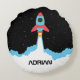 Rocket Launching in Outer Space Custom Name Round Cushion
