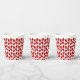 Whimsical red rocket ship birthday party design features WindyDesign's hand-drawn artwork. A fleet of bright red rocket ships on white cups.