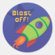 Blast off! Your child's friends will love this unisex rocket ship sticker! Seal your envelopes or hand them out as party favours.