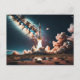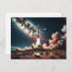 Rocket ship take off from an alien planet with the Milky Way in the background