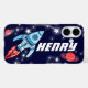 Cool space rocket iphone case. Personalise with your child's name up to 5 letters. This example reads Henry. Exclusively designed and illustrated by Sarah Trett. www.sarahtrett.com