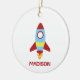 Rocket Spaceship Launching Custom Name Ceramic Tree Decoration