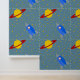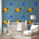 Rocketship to Saturn Design Wallpaper with stars and customisable background colour.