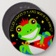 Celebrate your child's first birthdays with this colourful button, which features a cute tree frog with flaming red spiked hair and rocking a red guitar on a starry black background!