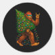 Rockin Christmas Bigfoot Carrying Tree Fun Xmas Ro Classic Round Sticker