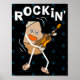 Rockin' text with a happy rock playing a guitar is a funny music design for musicians, students and teachers at birthdays and holidays.