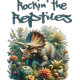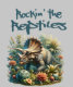 This vivid, colorful illustration of a Triceratops brings the prehistoric world to life as the iconic dinosaur wanders peacefully through lush, ancient foliage. The drawing has rich colors and exceptional detail that makes it pop on any apparel.