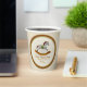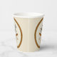 This paper cup features original digital painting by Leslie Sigal Javorek of a gold, silver & copper rocking horse, 3 outer rings to match & illusion of depth & colour of fine bone china. 3 text fields for baby's name, birth date & weight.