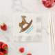 Rocking horse, custom text, baby shower napkins. Customise two lines of grey text beneath a cute, old-fashioned riding toy image. Choose cocktail napkins size or larger, in ecru or white colour.