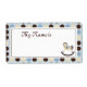 Blue and brown polka dot print with sweet rocking horse name tag.