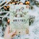 A classic rocking horse, a nostalgic toy that symbolises childhood wonder and timeless joy. Surrounding it are festive details pinecones, ornaments, stars, and eucalyptus sprigs creating a warm and cosy holiday mood. The background sparkles with golden accents against a soft green watercolor wash, giving it both elegance and playfulness. A small gingerbread-style house in the corner completes the wintry scene, making it feel like a page from a holiday storybook.