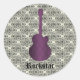 Rockstar Damask Guitar Stickers, Purple Classic Round Sticker