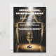 Front and centre, the invitation showcases an opulent velvet black and gold theatre stage that practically drips with old Hollywood allure. The lush curtains, richly textured and decadent, are drawn open just enough to reveal a singular, pristine microphone—your own personal symbol of stardom. The spotlight, intense and focused, illuminates the mic as if it were waiting for you to step up and claim your moment of fame.