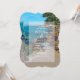 This beach design features a rocky shoreline. The picturesque setting combines greenery, blue ocean, rocky coastline and golden sand. The wording is elegantly framed with a simple white opaque border background. This is the perfect beach destination wedding design ideal for a summer or seaside wedding. Elegant and romantic beach wedding invitation design with modern elements. Matching wedding stationery items and other wedding invite formats are also available.