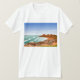 A lovely landscape design of a rocky coast. This design shows off a rocky coastline in all its glory. The ocean has waves rolling into the coastline. There is also an inlet with a beach. This rocky coast design looks great on this mens t-shirt. Perfect for yourself or as a gift
