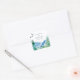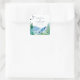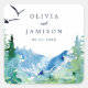 These Rocky Mountain destination wedding envelope seals are perfect for an outdoor wedding. The design features a blue and green painted wilderness landscape with watercolor pine trees, birds and mountains. Personalise the label with the names of the bride and groom.
