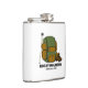 Well made flask, a little better than I had expected. Flask came in clear plastic box which gave it a nice presentation when I took it out of the zazzle packaging. Image is not printed on flask but on sticker. Don't know how this will hold up I haven't used it yet. This would make a Great gift! I plan to purchase more for friends! Cheers. I thought a little brighter than computer. Very crisp, writing wasn't
