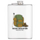 Well made flask, a little better than I had expected. Flask came in clear plastic box which gave it a nice presentation when I took it out of the zazzle packaging. Image is not printed on flask but on sticker. Don't know how this will hold up I haven't used it yet. This would make a Great gift! I plan to purchase more for friends! Cheers. I thought a little brighter than computer. Very crisp, writing wasn't