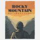 This design features a man hiking through a valley in the rocky mountain national park with the words "rocky mountain national park".