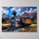 Rocky Mountain Train Poster celebrates the splendour of train travel through the Rocky Mountains. It portrays the grandeur of nature and the ability of trains to traverse these awe-inspiring landscapes.