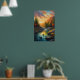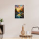 Rocky Riverbanks and Autumn Forest Under Sunset Poster