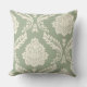 A vintage style decorative damask off-set (not central pattern) surface pattern influenced by rococo classical design in cream color detail on a green background.