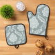 Rococo Damask Art I Duck Egg Blue+Teal Oven Mitt & Pot Holder Set