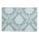 A vintage style decorative damask surface pattern influenced by rococo classical design in duck egg blue color detail on a teal background.