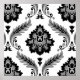 A vintage style decorative damask surface pattern influenced by rococo classical design in black and grey details on a white background.
